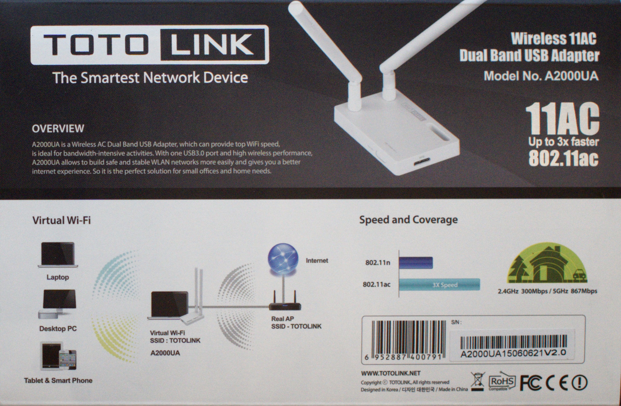 | contenidos del paquete | Adaptador inalámbrico A2000UA x 1 antena de 5dBi x 2 CD de recursos x 1 Cable USB x 1 Guía de instalación rápida x 1 |